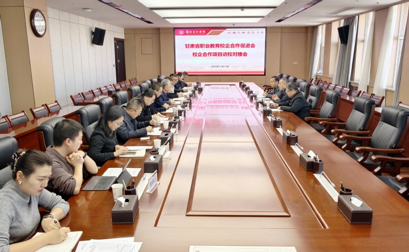 11月17日,甘肃省职业教育校企合作促进会会长赵振文、秘书长尚继星、监事陈军武一行到我校开展校企合作项目访校对接工作,副校长张焱出席访校对接会。