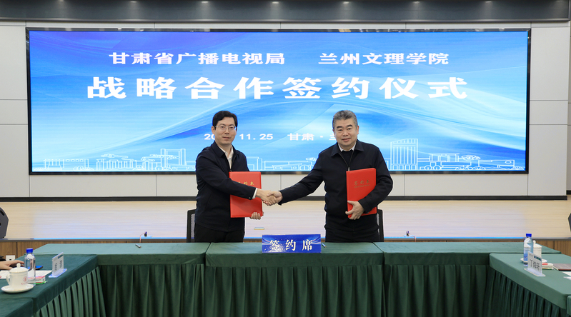 李润强表示,兰州文理学院作为省属应用型本科院校,深耕传媒领域前沿,在广电新闻人才培养、文化传承传播等方面积极探索,创特色、树品牌,取得显著成效,双方合作前景广阔。省广电局与学校签署战略合作协议,标志着校政合作迈入了一个崭新阶段。希望双方全面深化合作交流,积极打造产学研用一体化新平台,共建甘肃广电视听创作研究基地和纪录片与网络视听现代产业融合平台,研究探索集创意孵化、技术研发、成果转化为一体的发展模式;积极构建全媒体人才培养新范式,凝聚校政力量,办好实习实训、专业能力提升系列学术讲座和专项技能培训班,合力培养适应新时代全媒体传播需求的应用型人才;积极开拓陇原文化传播新路径,大力实施广电总局广播电视和网络视听精品创作工程和我省陇原文艺高峰攀登工程,组织开展“视听甘肃”联合创作,深度挖掘敦煌文化、黄河文化等优秀文化的时代价值,充分运用前沿新技术打造沉浸式视听产品,让陇原故事焕发时代光彩。