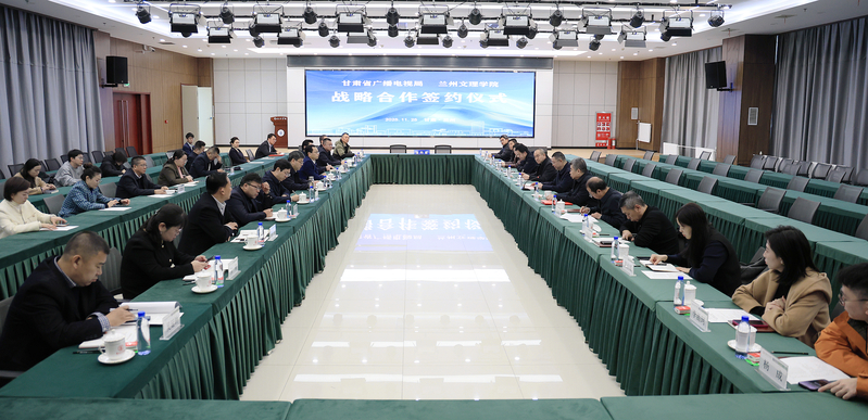 甘肃省广播电视局和学校相关职能部门、学院负责人参加签约仪式。